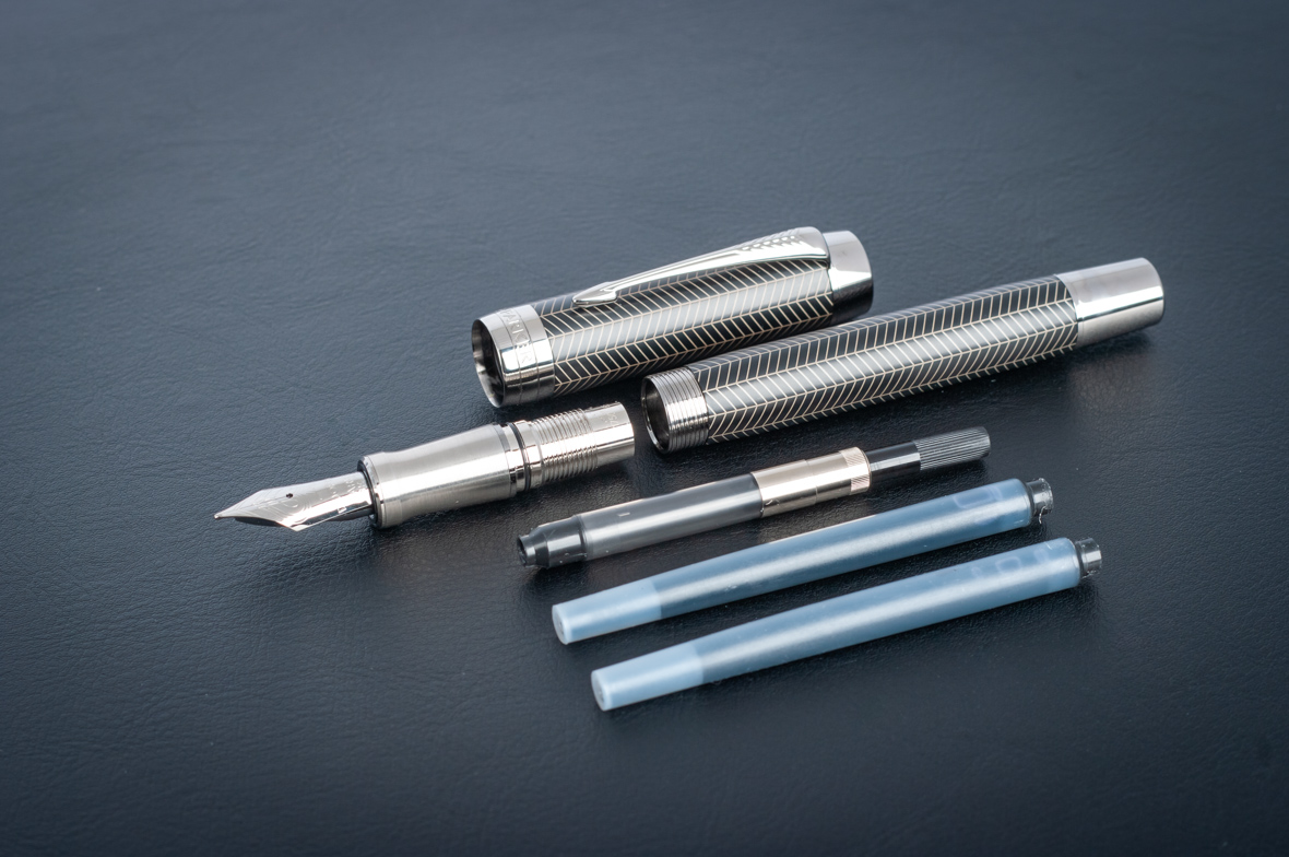 Перьевая ручка Parker Duofold Prestige Centennial Black Chevron CT от официального дилера Parker в Ульяновске. Вы можете дополнительно заказать гравировку, которая подчеркнет Вашу оригинальность и придаст памятность статусному подарку. Все ручки Паркер поставляются в фирменном футляре.